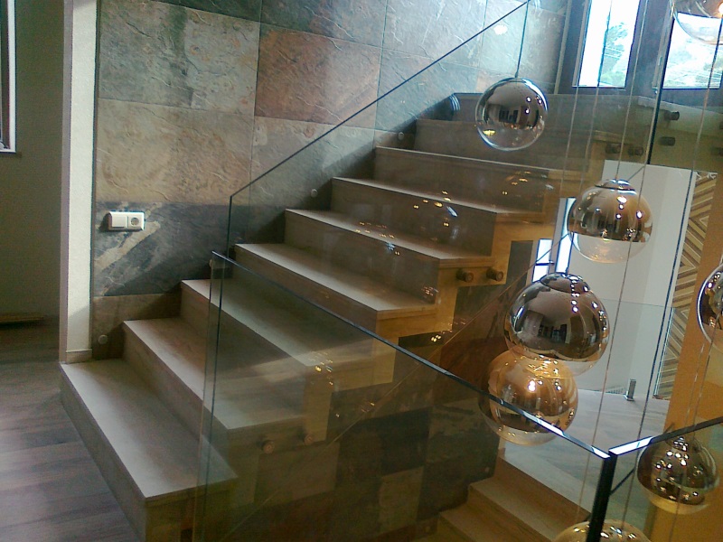 კიბე გამჭვირვალე საფეხურებით ჩანებზე