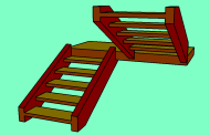 საფეხურები მიერთვიან მზიდ კოჭებს (ჩანებს) გვერდიდან, კიბის ფსკერი კი ტეხილი დახრილობაა |
